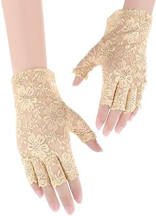 Lace Gloves for Women | Elegant Fingerless Fishnet Bridal & Wedding Gloves | Stylish Net Lace Gloves for Women
