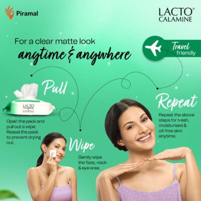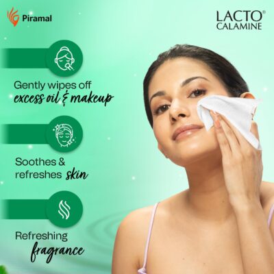 Lacto Calamine Daily Cleansing Facial Wipes gently cleanse the skin while removing makeup and impurities.