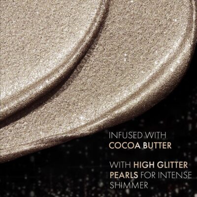 Its creamy formula spreads evenly, offering intense shimmer with effortless application.