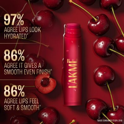 Lakme Lip Love Care Stick Cherry, with 10% Vitamin E Complex, nourished with Shea & Cocoa Butter and enriched with Almond & Jojoba Oil for 24hr moisturization in just 1 swipe, with SPF 15, 4.5g