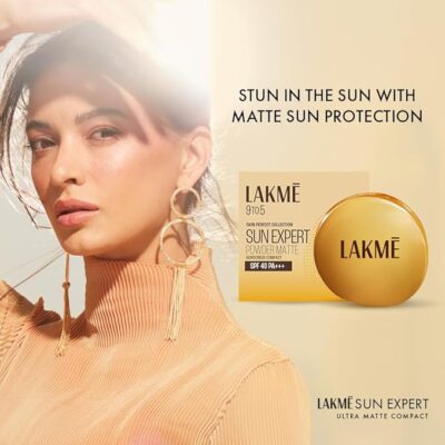 Lakme Sun Expert Ultra Matte SPF 40 PA+++ Compact is a lightweight, non-greasy, and non-sticky compact powder specially designed for Indian skin tones. It provides powerful sun protection with SPF 40 and PA+++, shielding your skin from harmful UVA and UVB rays. The ultra-matte formula helps control excess oil and shine, giving your skin a smooth, even-toned, and natural-looking finish. Ideal for daily use, this compact ensures your face stays fresh and protected even in hot, humid weather. Compact and easy to carry, the 7g Lakme Sun Expert is perfect for quick touch-ups, leaving your skin looking matte, bright, and sun-safe all day long.