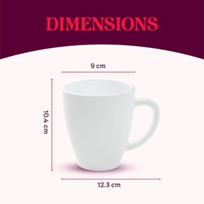 The Larah by BOROSIL Bali Opalware Mug is a perfect combination of style, strength, and everyday convenience. Made from premium-quality opalware, this mug is lightweight, durable, and completely bone-ash free for safe and hygienic use. With a generous 390 ml capacity, it is ideal for tea, coffee, milk, or other hot beverages. The mug is microwave and dishwasher safe, making reheating and cleaning simple and hassle-free. Featuring a clean white finish with a modern design, this crockery mug is suitable for daily use at home or office and also makes a thoughtful gifting option.