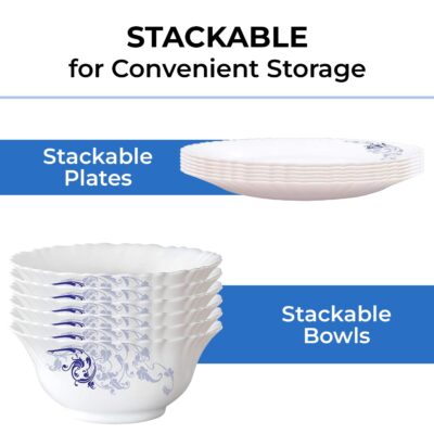 A 19-piece opalware dinner set for a family of 6, made from toughened, bone-ash-free glass. Lightweight, chip-resistant, microwave-safe, and dishwasher-safe—perfect for daily use and gifting. Elegant blue design enhances any dining table.