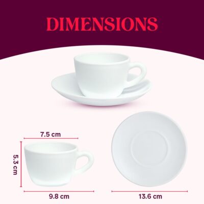 Larah by BOROSIL Helena Opalware Cup and Saucer Set of 12 Tea/Coffee Cups, 145 ml Each, Microwave & Dishwasher Safe, Bone-Ash Free, Crockery Set Ideal for Daily Use & Gifting