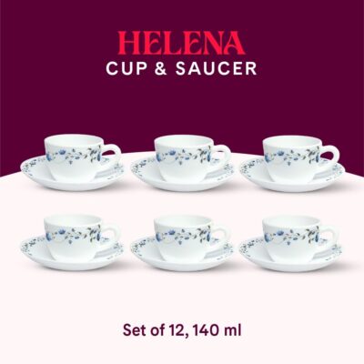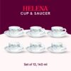 Larah by BOROSIL Helena Opalware Cup and Saucer Set of 12 combines elegance with everyday practicality. Each 145 ml cup is microwave and dishwasher safe, bone-ash free, making it perfect for daily use and gifting.