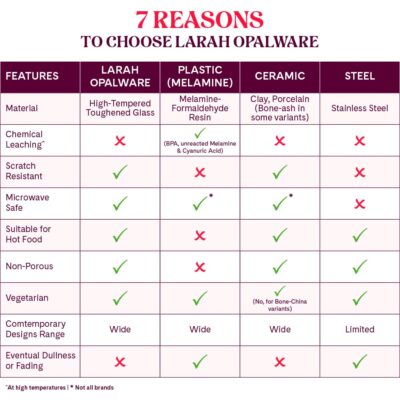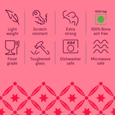 The Larah by Borosil Silk Series Kora Dinner Set (6 Pcs) combines elegance with everyday durability. Crafted from toughened opal glass, this set is 100% bone-ash-free, chip-resistant, lightweight, and scratch-resistant, making it perfect for vegetarian households. It is microwave-safe, stain-resistant, and dishwasher-safe, ensuring effortless reheating, hassle-free cleaning, and long-lasting shine. With its refreshing leaf-pattern design and stackable build, this compact dinner set is ideal for daily meals, festive occasions, and thoughtful gifting.