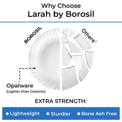 The Larah by Borosil Plain White Silk Series 19-piece dinner set is designed for everyday elegance and convenience. Made from toughened opal glass, this set is 100% bone-ash-free, chip-resistant, lightweight, and hygienic, making it ideal for vegetarian households. It is microwave-safe, dishwasher-safe, scratch-resistant, and space-saving, ensuring easy use, reheating, and storage. With its timeless plain white design, this dinner set is perfect for daily meals, festive occasions, and gifting.