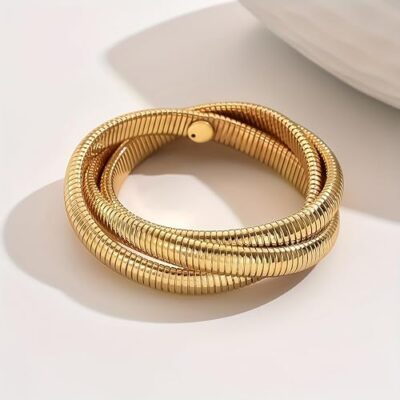 The Latest Stylish Chunky Gold Cuff Bangle Bracelet for Women and Girls is a striking accessory that combines contemporary design with a luxurious gold finish. Crafted with high-quality materials, this open cuff bangle is designed to stand out, adding instant glamour to any outfit. Its chunky structure exudes confidence and style, making it a must-have for those who love bold fashion statements. Lightweight yet durable, it ensures comfortable wear while maintaining its polished shine. The open-ended design allows for easy wearing and a secure fit on different wrist sizes. Its versatile appeal makes it suitable for pairing with casual attire, evening dresses, or festive ensembles. Perfect for parties, weddings, or everyday styling, it elevates your look effortlessly. The minimal yet impactful design ensures it remains a timeless piece in your jewelry collection. Whether worn alone or stacked with other bangles, it adds sophistication and charm to your personal style.