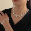 Latest Stylish Design Fancy Pearl Bracelet Earrings Necklace Jewellery Set for Women Valentine Gift for Girlfriend