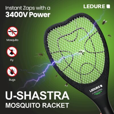 Ledure UShastra Rechargeable Mosquito Killer Racquet | 3400V Instant Kill | Shock-Proof Mesh | 500mAh Battery | 6-Month Warranty | Fly Swatter Bat