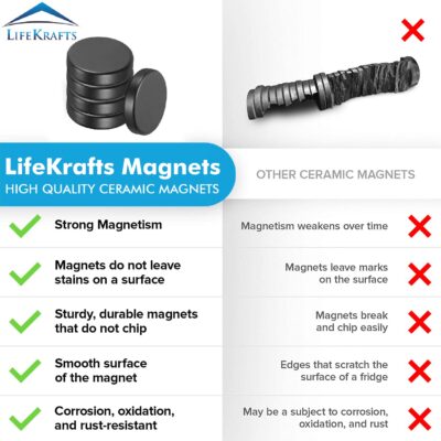 The LifeKrafts Ceramic Magnets (18×5 mm, Pack of 10) are high-grade, strong round disc magnets designed for versatile everyday use. Made with Grade 11 ceramic material, these magnets provide excellent magnetic strength and durability for a variety of applications. Ideal for DIY projects, crafts, refrigerator organization, office boards, or school activities, they offer reliable hold and long-lasting performance. Their compact and sleek design makes them easy to handle and perfect for both professional and personal use. Keep things in place effortlessly with these powerful multipurpose magnets.