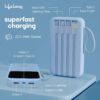 With 3 input options (in-built USB cable, Lightning, and Type-C port) and 6 output ports (3 built-in cables, 1 Type-C, and 2 USB ports), it can charge multiple devices simultaneously — from smartphones and tablets to cameras and earbuds.