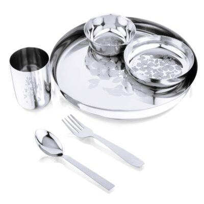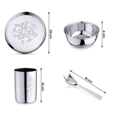 The LiMETRO STEEL 24-piece laser printed dinner set is crafted from high-quality 202 stainless steel, offering exceptional durability and long-lasting shine. Designed for daily use, it is heavy, rust-proof, BPA-free, and dishwasher-safe, making it easy to maintain while ensuring safe and hygienic meals. The elegant mirror-finish with laser print design adds a touch of sophistication to your dining table. Perfect for large and blended families, gatherings, and gifting on occasions like weddings, festivals, and housewarmings, this dinner set is both practical and stylish for everyday lunch and dinner use.