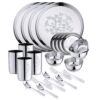 A 24-piece heavy-grade stainless steel dinner set with elegant laser print design. Rust-proof, durable, BPA-free and dishwasher-safe—perfect for daily family dining and gifting.