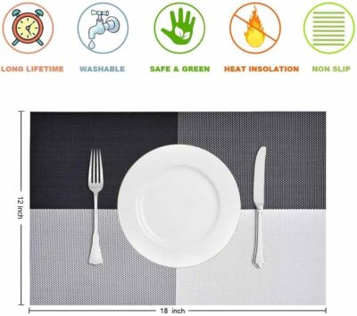 Be the first to review “Linen Grey Placemats Set of 4 – Heat Resistant Non-Slip Place mats for Dining Table, Washable Durable PVC Vinyl Woven Table Mats (Black and White)”