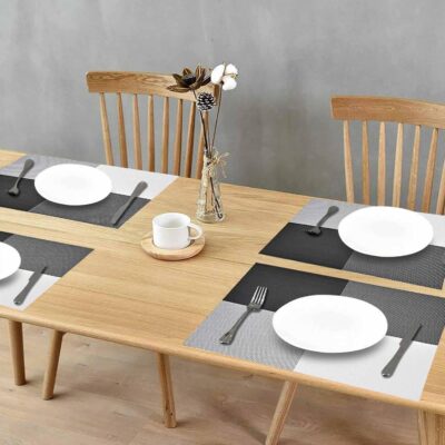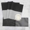 This set of 4 linen-texture placemats is crafted from high-quality, durable PVC vinyl with a stylish black and white woven pattern, making them both functional and visually appealing for any dining space. Each placemat is heat-resistant and non-slip, providing reliable protection for your dining table against hot plates, spills, and scratches. The woven design adds an elegant, modern touch while ensuring proper airflow so the mats dry quickly after cleaning. These placemats are washable, easy to maintain, and perfect for daily use in homes, restaurants, or office dining areas. Their sturdy build and versatile grey-toned look make them ideal for enhancing both casual meals and special dining setups.
