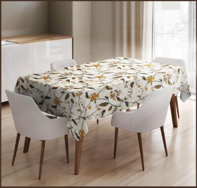 Bring charm and elegance to your dining area with the LINENWALAS 100% Cotton Table Cloth, designed for standard 6-seater dining tables. Measuring 60 × 90 inches, this rectangular table cover features the delightful Birdie Bliss print—a beautiful blend of soft colours and nature-inspired artwork that instantly brightens your dining or living space. Made from premium 100% cotton, it offers a smooth, breathable, and durable fabric that drapes gracefully while protecting your table from spills, scratches, dust, and daily wear. Perfect for centre tables and dining setups, this tablecloth enhances both casual and special dining occasions with its fresh, stylish look. Easy to wash and maintain, it combines aesthetic appeal with long-lasting performance, making it an elegant and practical addition to any modern home.