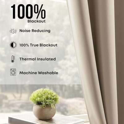 Upgrade your living space with these premium curtain panels from LINENWALAS — designed to deliver both style and high-function performance. This set includes two panels, each approximately 8 feet long, making them especially suited for doorways, tall windows or expansive living-room glazing. The “100% true blackout” claim stems from triple-weave technology and a specialized blackout lining, effectively blocking 100% of sunlight and UV rays, which ensures complete darkness when drawn. In addition to light-blocking, these curtains are designed for thermal insulation and noise reduction — helping to keep your room cooler in hot weather, warmer in cooler weather, and quieter from outside sounds. The solid color design (you mentioned “Beige”) provides a modern, minimalist look that blends smoothly with a variety of décor styles — from living rooms to bedrooms to home offices. The eyelet or twist-tab hanging (depending on variant) makes installation quick and gives the curtains a clean, elegant drape.
