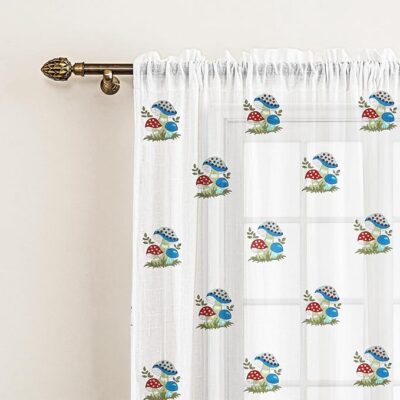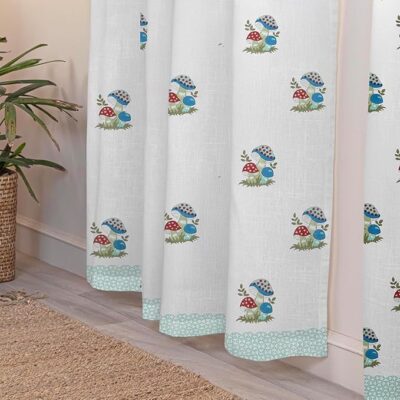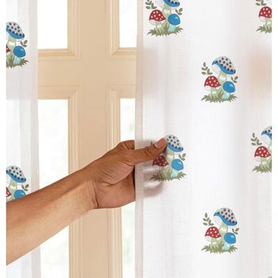 LINENWALAS Cotton Linen Printed Sheer Curtain Set of 2 Panels with Rod Pocket Hanging, Floral Printed Window Curtains Non Blackout Light Filtering Curtains (5 Feet x 4.5 Feet, Mushroom Carnival)