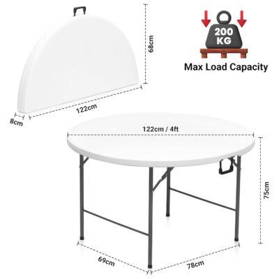 Livzing 4 Ft Plastic Folding Table with Metal Frame | 200 kg Load Capacity | Foldable and Portable Dining Table | Travel Camping Table | Patio, Garden, Indoor and Outdoor Sturdy Picnic Table (HDPE)