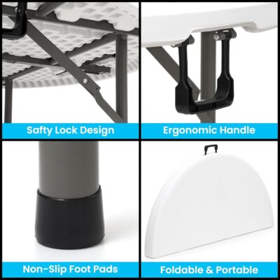 Its foldable and portable design makes it easy to carry, store, and set up anywhere perfect for dining, camping, picnics, patio gatherings, and garden parties.