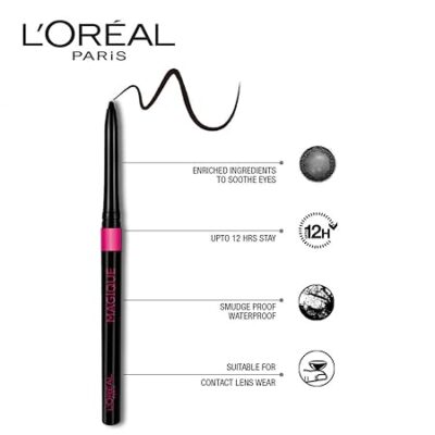 Elevate your eye game with L’Oréal Paris Kajal Magique Matte Finish (0.35 g) in classic black. This precision kajal pencil offers intense pigmentation and a soft matte texture, enabling you to easily create dramatic lines or subtle definition with ease.