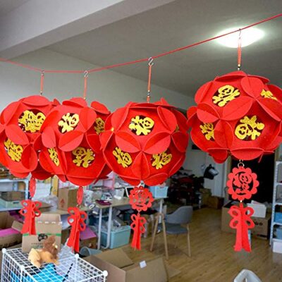 The LOVENVOY Hydrangea Palace Lantern set includes 2 beautifully designed gilt red lanterns, perfect for adding an elegant and festive touch to Chinese New Year, Spring Festival, Mid-Autumn Moon Festival, weddings, and special celebrations. Crafted with intricate hydrangea-inspired detailing and a rich red-and-gold finish, these lanterns symbolize prosperity, happiness, and good fortune. Made from high-quality, durable materials, they maintain their shape beautifully and add a luxurious traditional charm to any room or event setup. Ideal for hanging in living rooms, entryways, party halls, and wedding venues, these lanterns create a warm, celebratory atmosphere and serve as stunning ornamental pieces. Their classic design and vibrant colors make them a versatile decoration choice for both festive occasions and refined home décor.