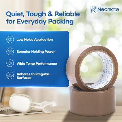 Low Noise Brown BOPP Packaging Tape offers strong, durable adhesion with minimal noise during use. Each 48mm x 50m roll (pack of 2) is ideal for packaging, DIY projects, and secure sealing.