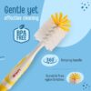 Its grooved, anti-slip handle ensures a firm and comfortable grip, while the suction base allows easy upright storage and quick drying. Made from durable, BPA-free plastic, this brush is safe, long-lasting, and perfect for everyday use. The bright yellow color adds a cheerful touch to your baby care routine.
