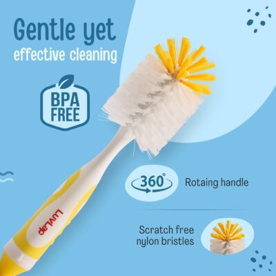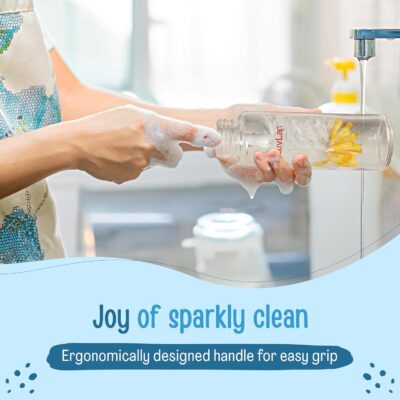 The LuvLap 2-in-1 Bristle Baby Feeding Bottle Cleaning Brush & Nipple Cleaner is thoughtfully designed to provide thorough and gentle cleaning for your baby’s feeding essentials. Featuring soft, high-quality bristles, it easily reaches and cleans every corner of both narrow and wide-neck bottles, ensuring complete hygiene. The included nipple cleaner allows for precise and gentle cleaning of delicate nipples, preventing damage or residue buildup. Its grooved, anti-slip handle ensures a firm and comfortable grip, while the suction base allows easy upright storage and quick drying. Made from durable, BPA-free plastic, this brush is safe, long-lasting, and perfect for everyday use. The bright yellow color adds a cheerful touch to your baby care routine.