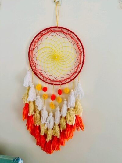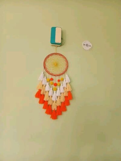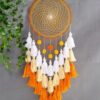 M/S Rakhi Handicraft 8-Inch Handmade Tassel Dream Catcher Wall Decoration – 35.5cm x 71cm (14" x 28") – Orange & White