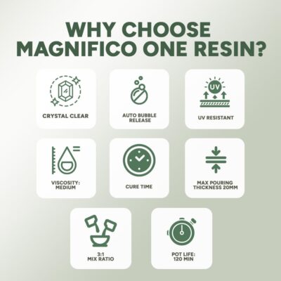 Be the first to review “Magnifico One Resin – 1.2 KG (3:1) Clear UV-Resistant Epoxy Resin Art Kit, Smooth Finish, Easy to Use with Self-Leveling.”
