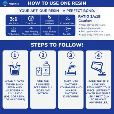 Magnifico One Resin - 3.2 KG (3:1) Clear UV-Resistant Epoxy Resin Art Kit, Smooth Finish, Easy to Use with Self-Leveling.