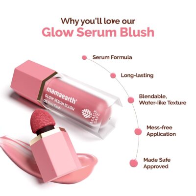 Mamaearth Glow Serum Blush in Rosy Flush enhances cheeks with a subtle, healthy flush and radiant glow.