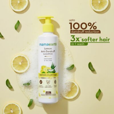 Mamaearth Lemon Anti-Dandruff Shampoo is formulated with lemon, ZPTO, and climbazole to fight dandruff effectively. It soothes itchy, flaky scalp while leaving hair softer and frizz-free after every wash.