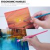 A colorful set of 7 synthetic paint brushes with soft bristles and ergonomic plastic handles. Perfect for kids, school projects, and creative painting with watercolors, acrylics, oils, and poster colors.