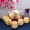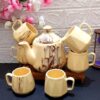 Marble Design Ceramic Tea Kettle Milk Ceramic Pot and Cup Set of 6, Kettle Size 750ml, Cream Color