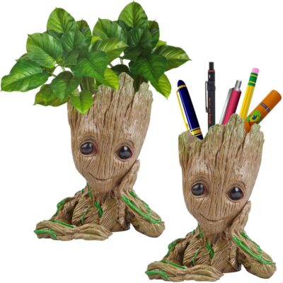 The Marvel Avengers Infinity War Pot featuring Groot is a creative and multifunctional accessory that combines a flowerpot with a pen holder. Designed with a wooden-look finish and shaped like Groot, it adds a fun and decorative touch to any desk, study table, or shelf. With a height of 16 cm, it is compact yet spacious enough to hold small plants, succulents, pens, pencils, and other stationery items efficiently. Made from durable materials, it ensures long-lasting use while being lightweight and easy to move. Ideal for kids, students, Marvel fans, and office workers, it brightens up workspaces and encourages organization. The charming design makes it a perfect gift or collectible for fans of the Avengers series. Combining functionality with playful aesthetics, this Groot pot keeps your essentials neatly arranged while adding greenery and style to your environment.