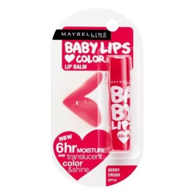 Maybelline Baby Lips Color SPF 16 Lip Balm in Berry Crush hydrates lips while adding a juicy berry tint.