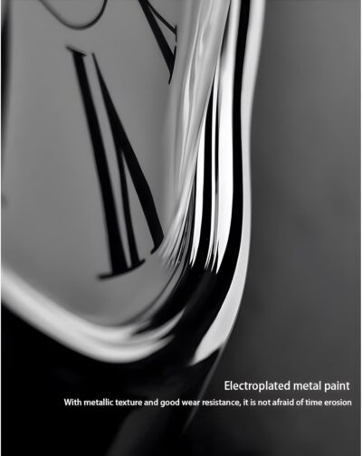 This melting desk clock features a unique silver melted design with Roman numerals, adding a touch of artistic elegance to home or office décor. Perfect for desks, shelves, or as a decorative accent.
