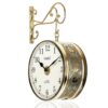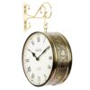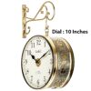 Metal Analog Double Sided Vintage Station Wall Clock with Brass in dial (Golden, 10 Inches)