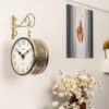 The Metal Analog Double-Sided Vintage Station Wall Clock is a timeless piece with a golden brass dial and elegant design. Its double-sided feature ensures visibility from both directions, making it perfect for home or office décor.