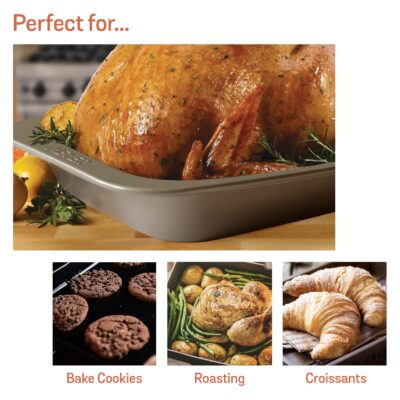 The Meyer Bakemaster Carbon Steel Non-Stick Mini Oven Roaster is a versatile and essential bakeware piece that’s perfect for everyday cooking, roasting, and baking in your kitchen. Made from heavy-gauge cold-rolled carbon steel, this premium roasting pan offers excellent heat conduction and durability for uniform cooking and consistent results every time.