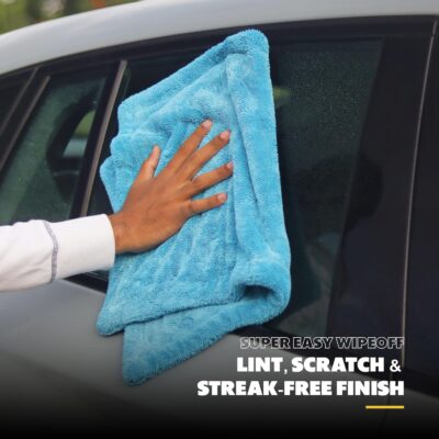 Engineered for serious detailing, this 1200 GSM ultra-thick microfiber towel offers exceptional water absorption—capable of soaking up to 10 × its weight—making drying quicker and streak-free. Featuring a twisted-loop, edgeless design, it ensures flawless softness and eliminates sharp seams, significantly reducing the risk of scratches on delicate automotive and motorcycle surfaces. At a compact yet effective 40 × 60 cm size, the towel strikes the right balance between coverage and ease of handling, even when soaked. Crafted to last, it retains performance wash after wash—designed to endure up to 500 machine cycles without compromising quality or absorbency. In vibrant blue and sold as a single-piece pack, this microfiber towel is perfect for quick, scratch-free drying and detailing on both cars and bikes, delivering a polished, showroom-ready finish every time.