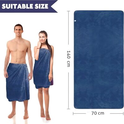 This large-size microfiber bath towel is crafted from ultra-soft coral fleece, offering exceptional comfort, superior absorbency, and a gentle feel on the skin. Measuring 70 x 140 cm, it provides ample coverage for both men and women, making it ideal for daily bathing as well as gym, travel, spa, and swimming use. The high-quality microfiber material absorbs water quickly while drying faster than traditional cotton towels, ensuring freshness and convenience with every use. Lightweight yet durable, it features a built-in hook for easy hanging and faster drying. Designed in an elegant dark blue shade, this towel combines practicality, style, and long-lasting performance, giving you a soft, cozy, and efficient drying experience every time.