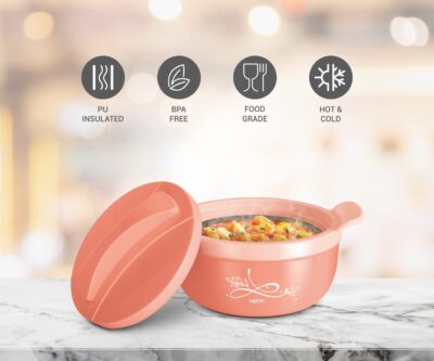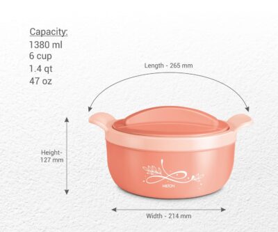 Serve hot, fresh meals every time with the MILTON Crave 1500 Casserole. Designed with a sleek peach finish, durable stainless-steel interior, and robust insulation, it keeps your food warm for long durations while adding a stylish touch to your dining table.