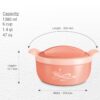 MILTON Crave 1500 Inner Stainless Steel Casserole (1380 ml, Peach) | Double-Walled Insulated Hot Box | Keeps Food Hot for Hours | Easy to Carry | 1-Year Warranty