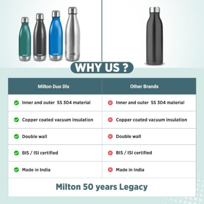 Stay refreshed wherever you go with the Milton Duo DLX 1000 Thermosteel Bottle, built to combine performance, durability, and style. Designed with advanced double-walled vacuum insulation, it keeps beverages hot or cold for up to 24 hours, making it perfect for year-round use.