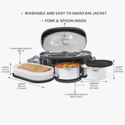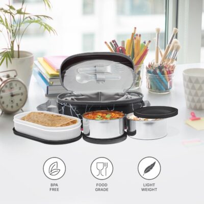 Crafted from high-quality, BPA-free, food-grade materials, this lunch box ensures safe, toxin-free meals. The stainless-steel containers retain heat efficiently, while the microwave-safe oval box allows quick reheating without the lid — making it perfect for busy workdays.