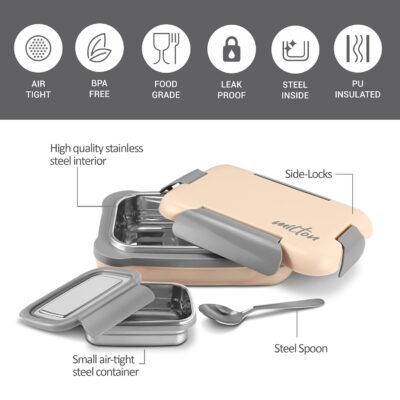 MILTON More Meal Large Kids Lunch Box | 770 ml & 175 ml Steel Insulated Containers with Clip-Lock Lid